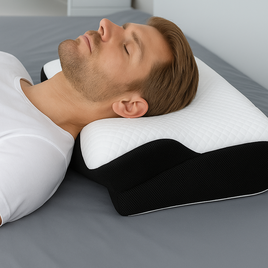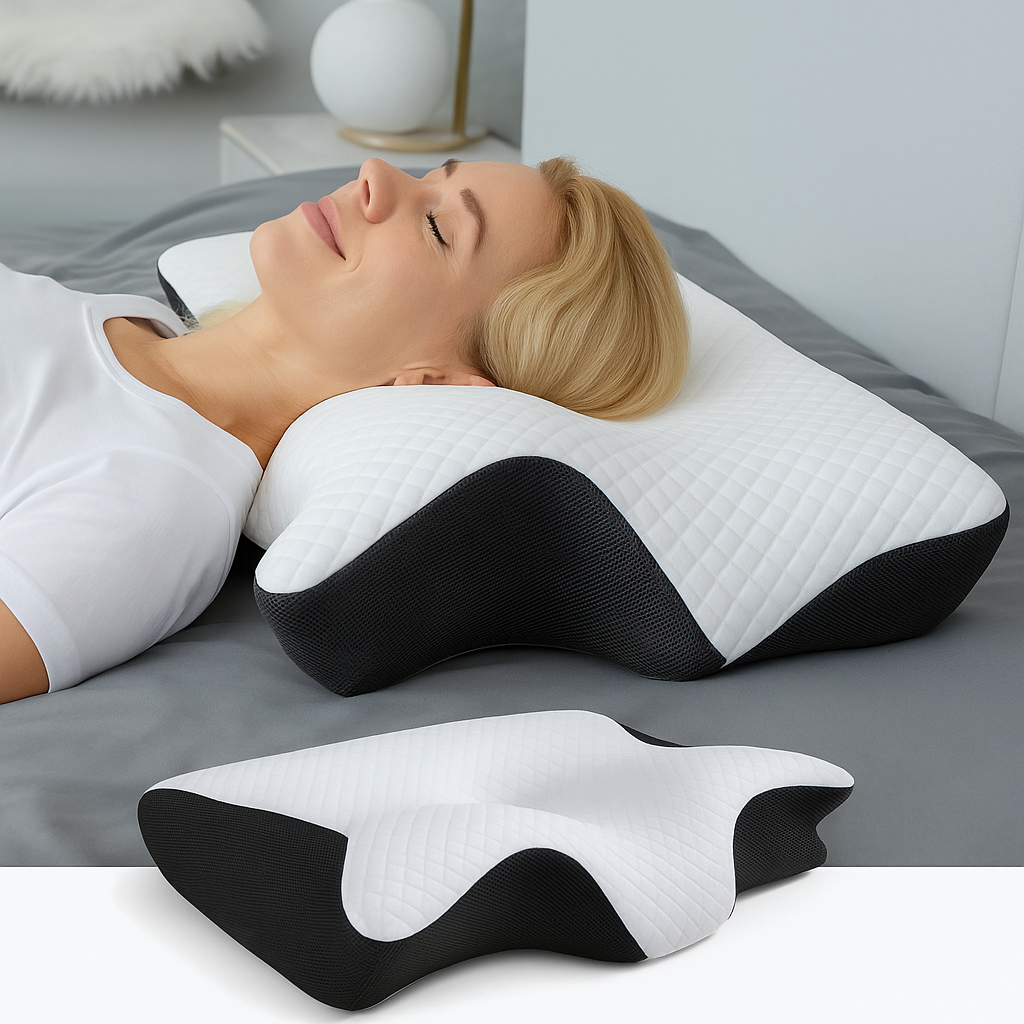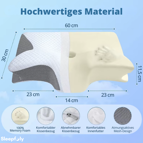Das Sleepfuly Nackenkissen wurde ergonomisch entwickelt, um eine natürliche Kopf- und Nackenhaltung während des Schlafs zu fördern.