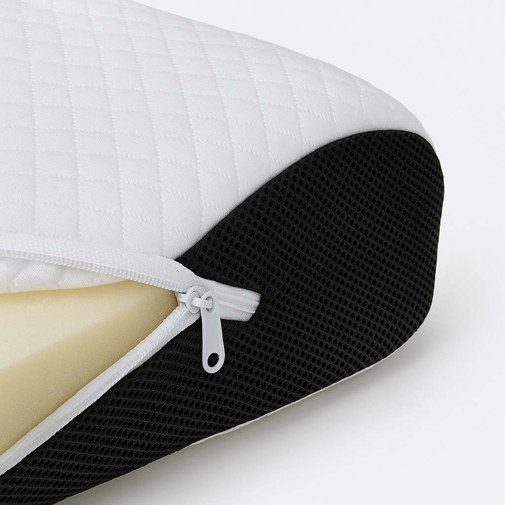 Der Kern besteht aus hochwertigem Memory-Foam, der sich individuell an deine Kopfform anpasst und dauerhaft formstabil bleibt.
